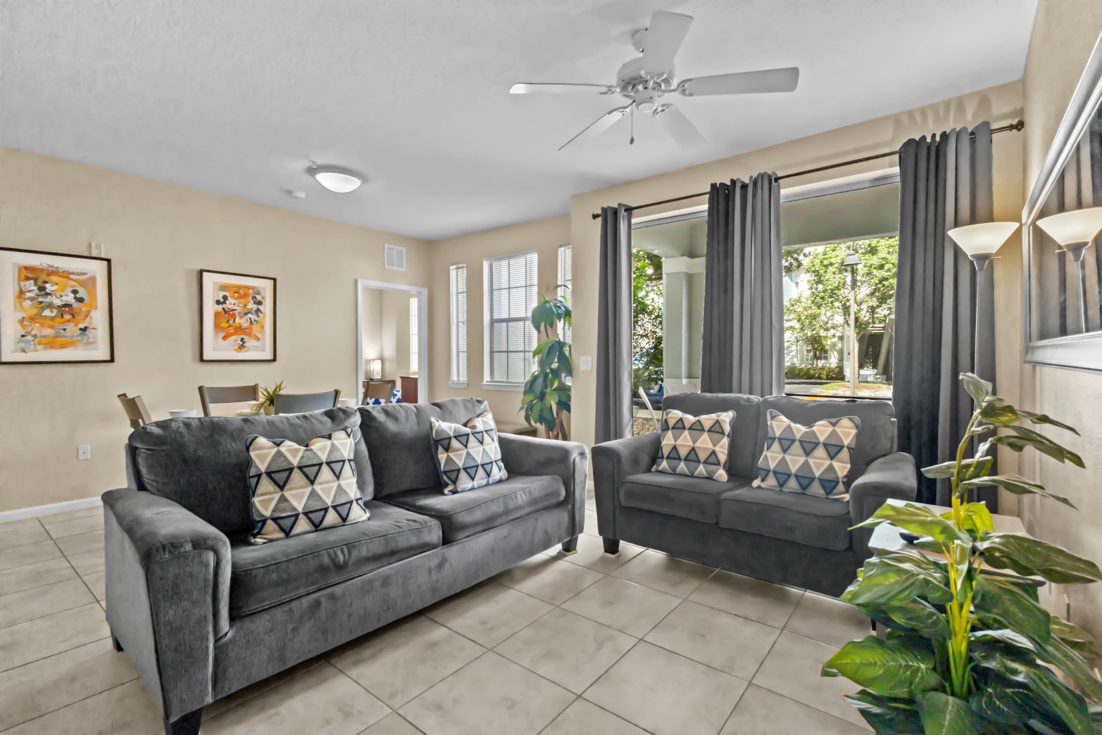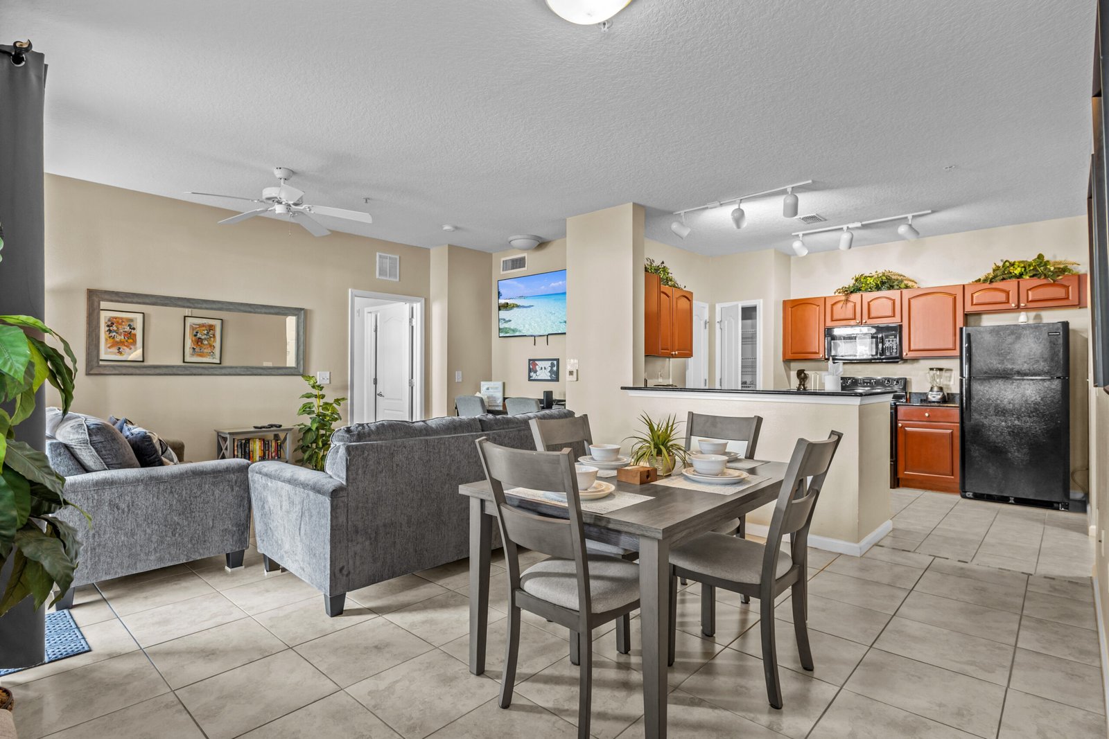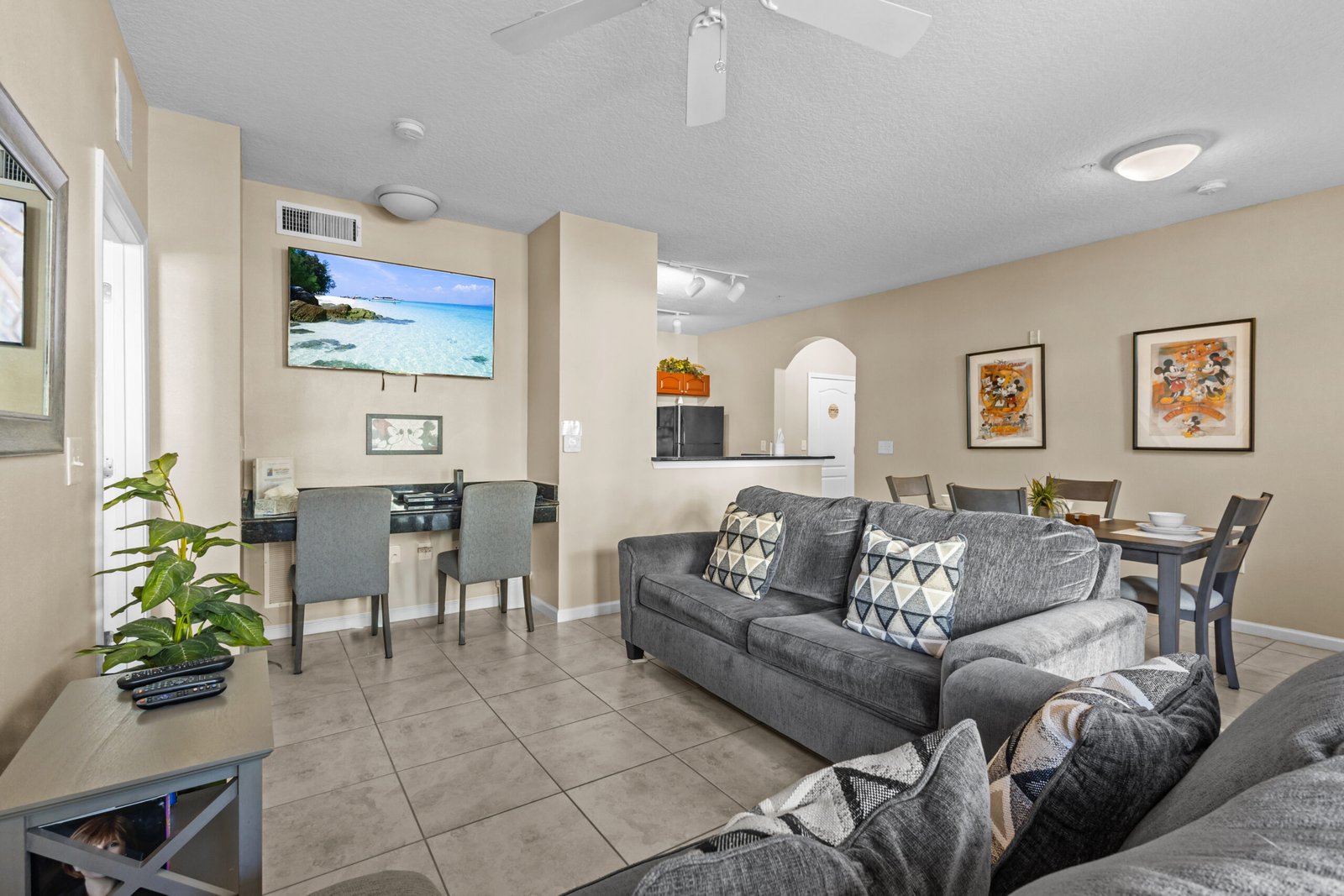 Escape to this charming 2-bedroom, 2-bath condo at Cane Island Resort, just minutes from Disney, Universal, and world-class attractions. Relax in a gated community with a sparkling pool, fitness center, sauna, and game room. This stylish unit features modern amenities like granite countertops, WiFi, and a fully equipped kitchen. Perfect for family getaways or business trips, the condo offers a peaceful retreat with easy access to shopping, dining, and entertainment.