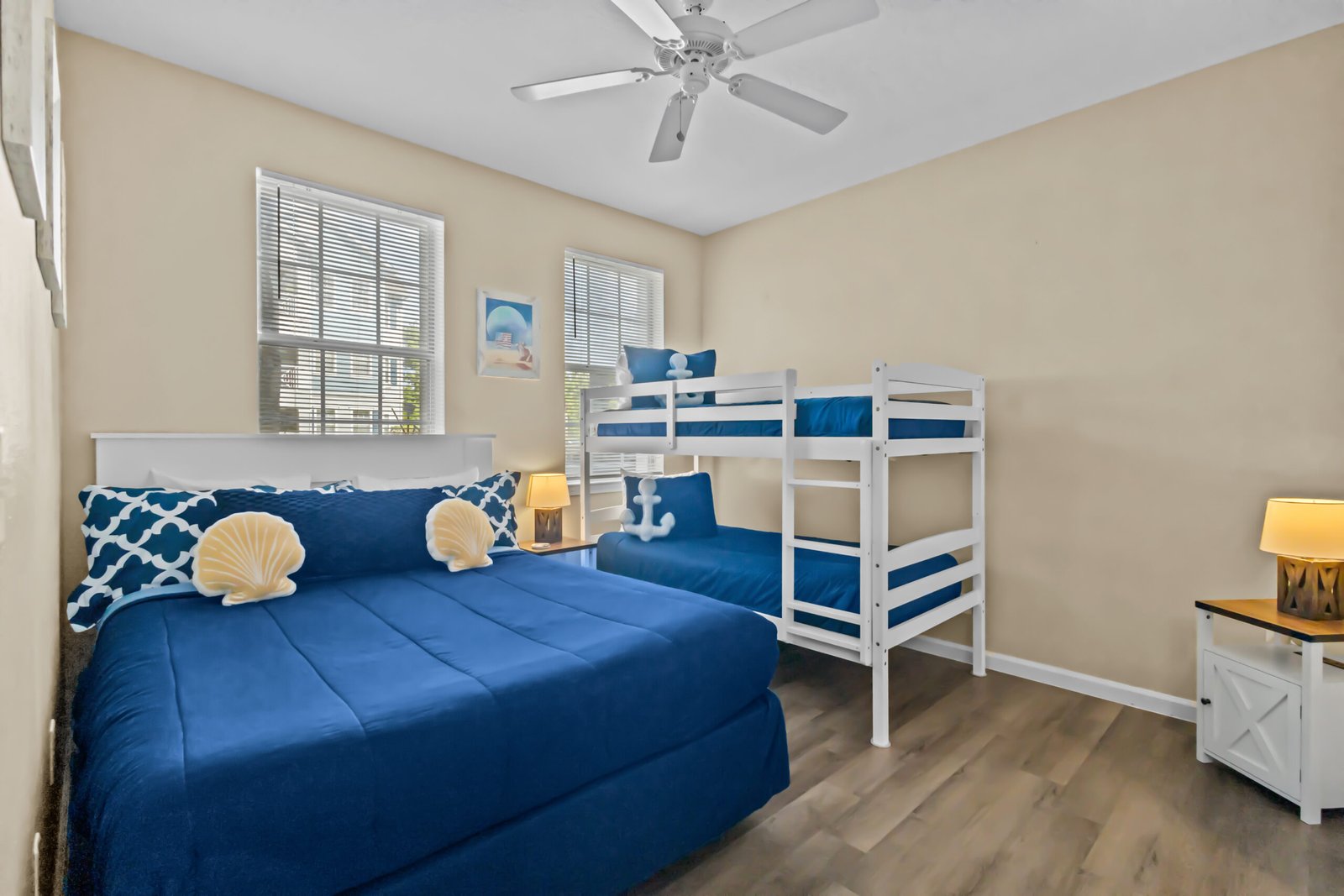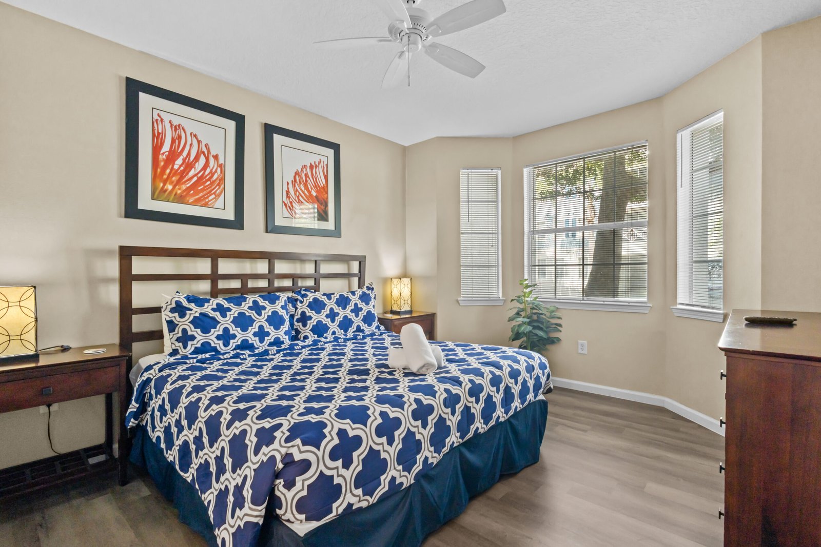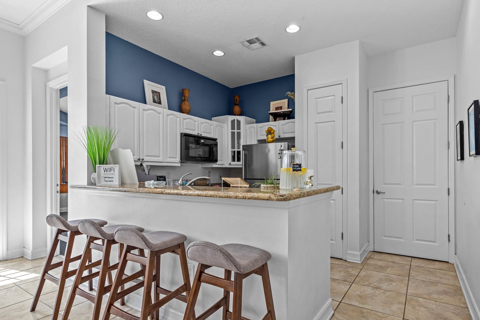 Escape to this charming 2-bedroom, 2-bath condo at Cane Island Resort, just minutes from Disney, Universal, and world-class attractions. Relax in a gated community with a sparkling pool, fitness center, sauna, and game room. This stylish unit features modern amenities like granite countertops, WiFi, and a fully equipped kitchen. Perfect for family getaways or business trips, the condo offers a peaceful retreat with easy access to shopping, dining, and entertainment.