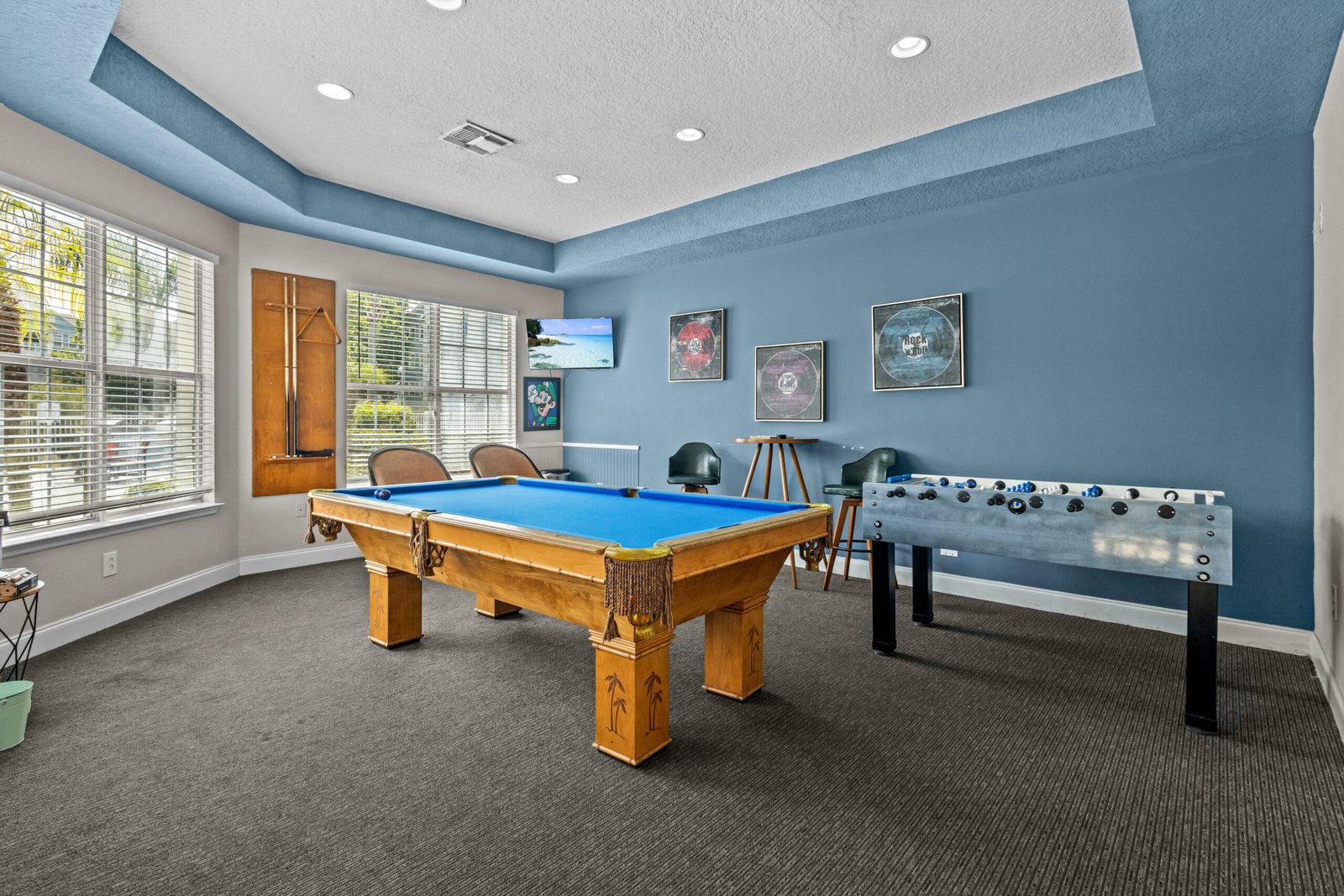 Step outside and enjoy the resort’s heated pool, sun deck, and covered spa, all overlooking a serene pond with a lighted fountain and newly installed bbq area. Stay active at the fitness center or unwind in the sauna and game room.