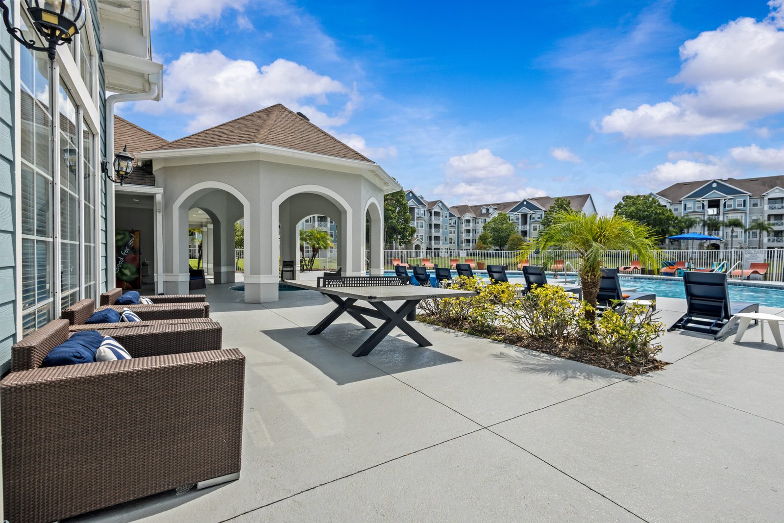 Relax on your private covered porch after a busy day at the parks, soaking up the peaceful surroundings of this pristine community.