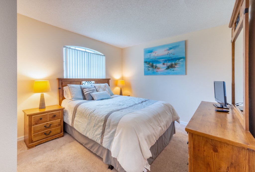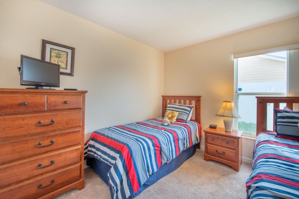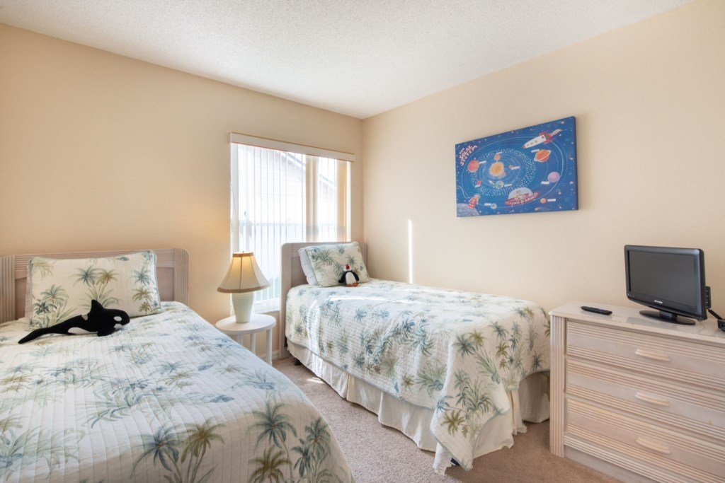 Bedrooms 3 & 4 both have twin beds, nightstand, colour TV’s with Roku sticks and built-in wardrobes.