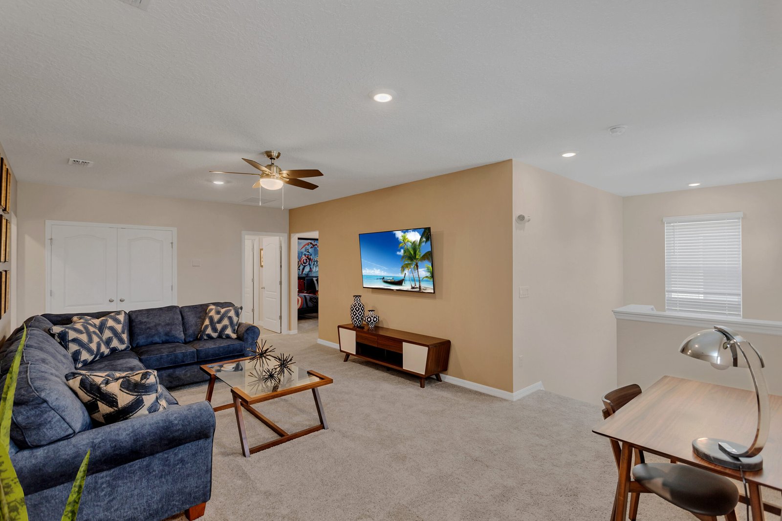 Discover the splendor of our 7-bedroom, 5.5-bathroom haven, thoughtfully crafted to provide families with unparalleled comfort. Situated within the exclusive gated Solterra Resort in Davenport, our villa grants access to an array of exceptional amenities, designed to cater to the needs of families.